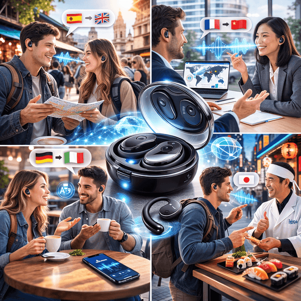 La traducción simultánea y micrófonos con reducción de ruido permiten conversaciones naturales y seguras en viajes y trabajo