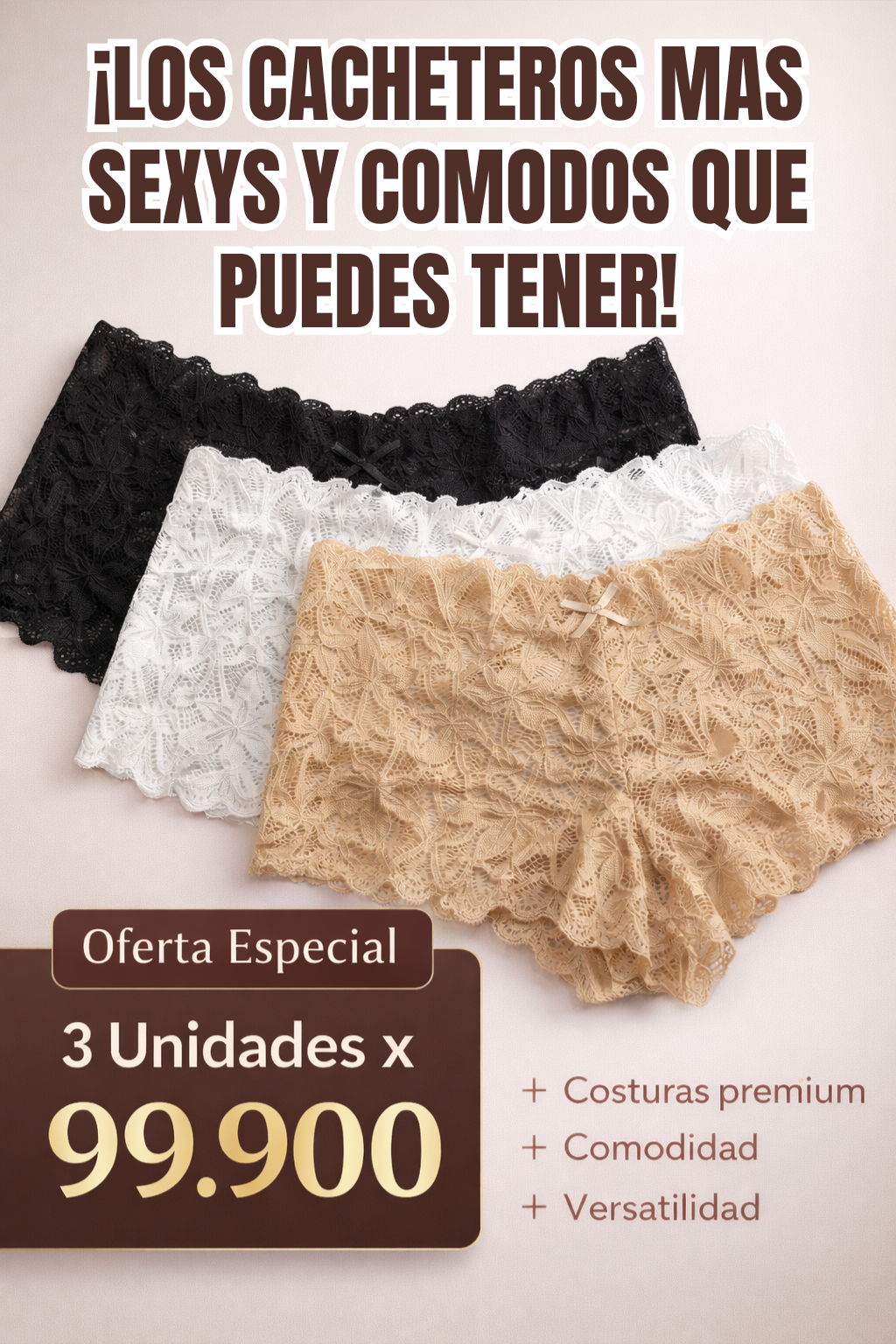 Cacheteros en encaje. colores: blanco, negro y beige