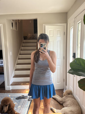 La falda combina pliegues y short interior elástico que permite golpes largos y desplazamientos rápidos sin rozaduras ni restricciones, mejorando el rendimiento en tenis y pádel.
