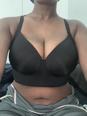 Sí. La malla interior y las copas moldeadas ofrecen soporte sin calambres, ideal para jornadas de oficina o eventos largos.